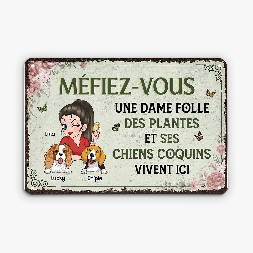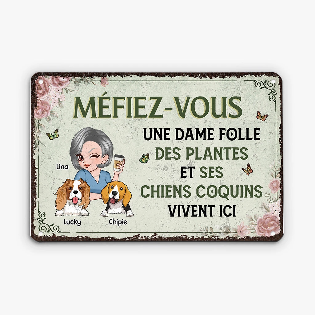 Plaque En Métal Personnalisée Femme – Méfiez-vous Avec Chiens