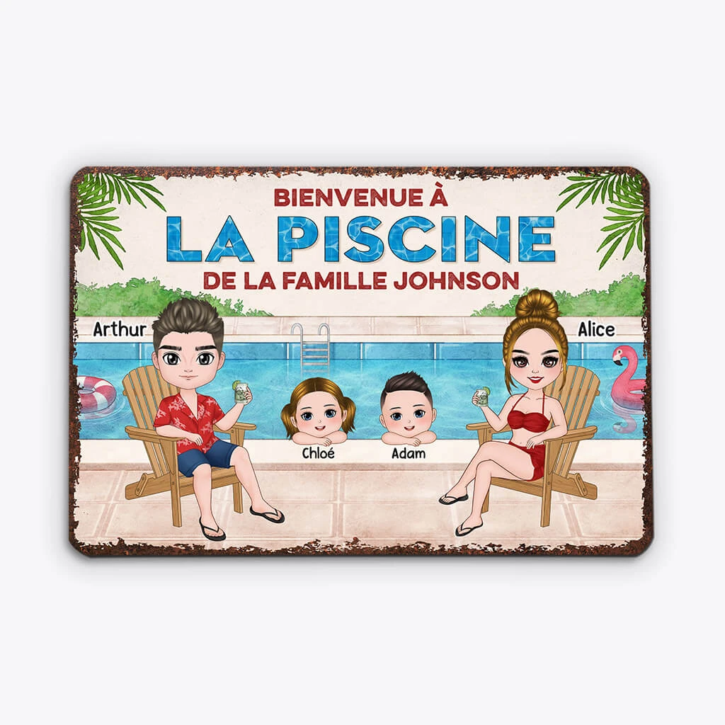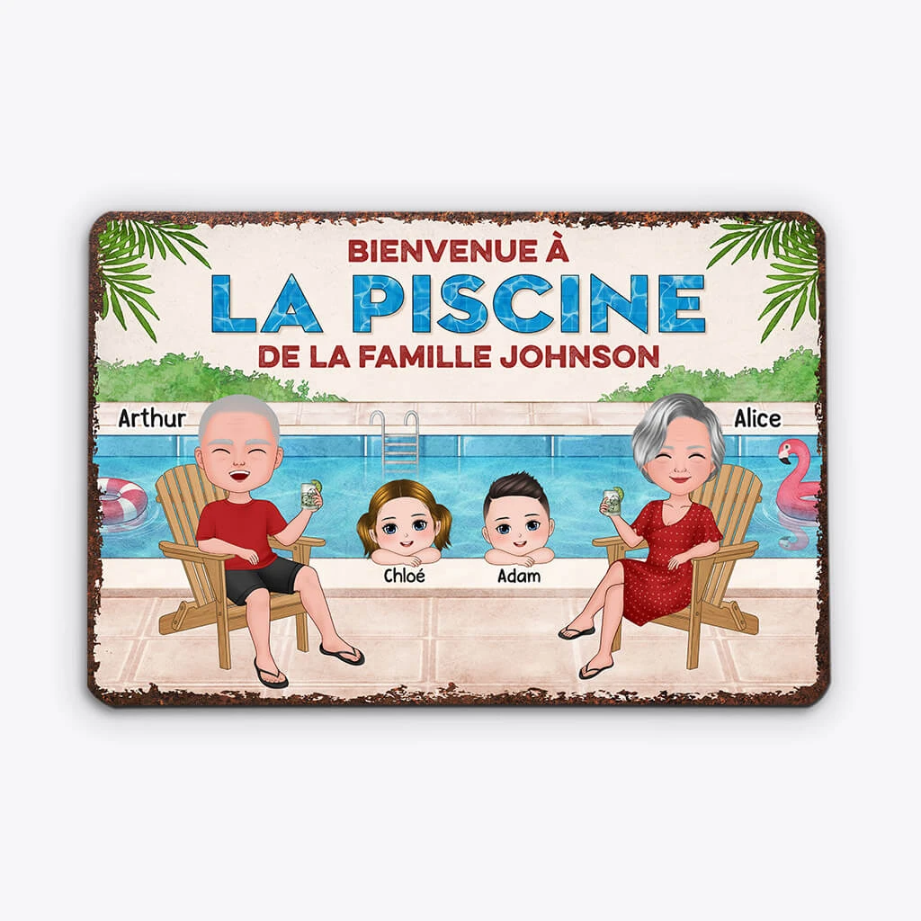 Rendez l’accès à votre piscine unique avec cette plaque famille personnalisée. Parfaite pour une maison familiale avec espace extérieur, elle affiche un message accueillant.