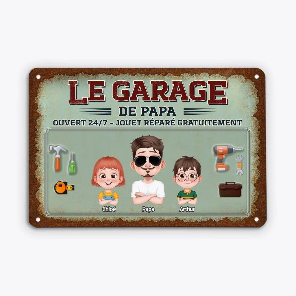 Offrez une touche de caractère et d’humour à l’atelier de votre père avec cette plaque garage papa personnalisée. Son design amusant et ses finitions robustes en font un cadeau idéal pour la fête des pères ou son anniversaire. À suspendre fièrement sur la porte de son atelier ou dans son garage, cette plaque métal personnalisée est à la fois décorative et affectueuse.