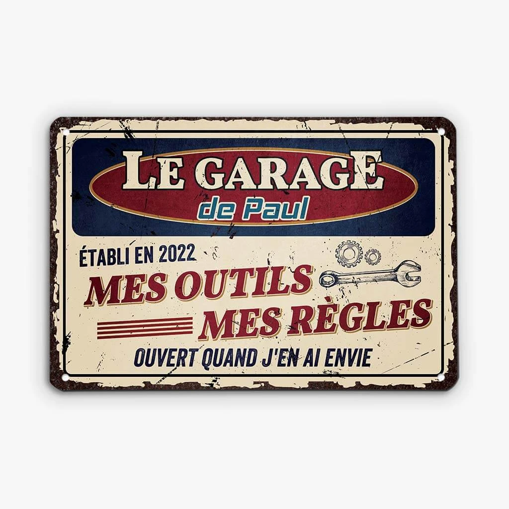 Minimaliste mais efficace, cette plaque en métal pour homme établit les règles de l’atelier. Un clin d’œil aux bricoleurs fiers de leur territoire.