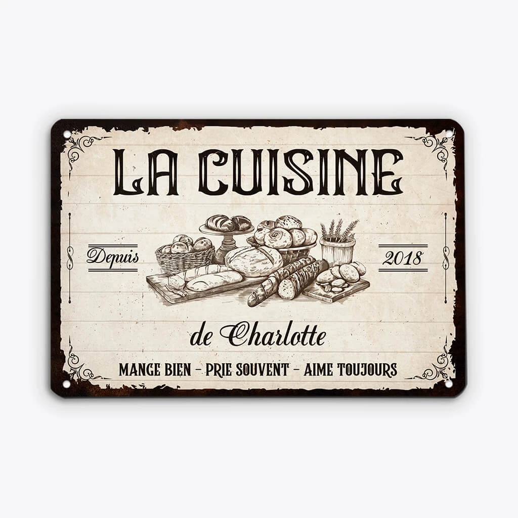 Cette plaque en métal personnalisable est parfaite pour marquer l’espace culinaire de quelqu’un qui cuisine avec passion. Une touche personnelle à ajouter sur un mur ou une porte.