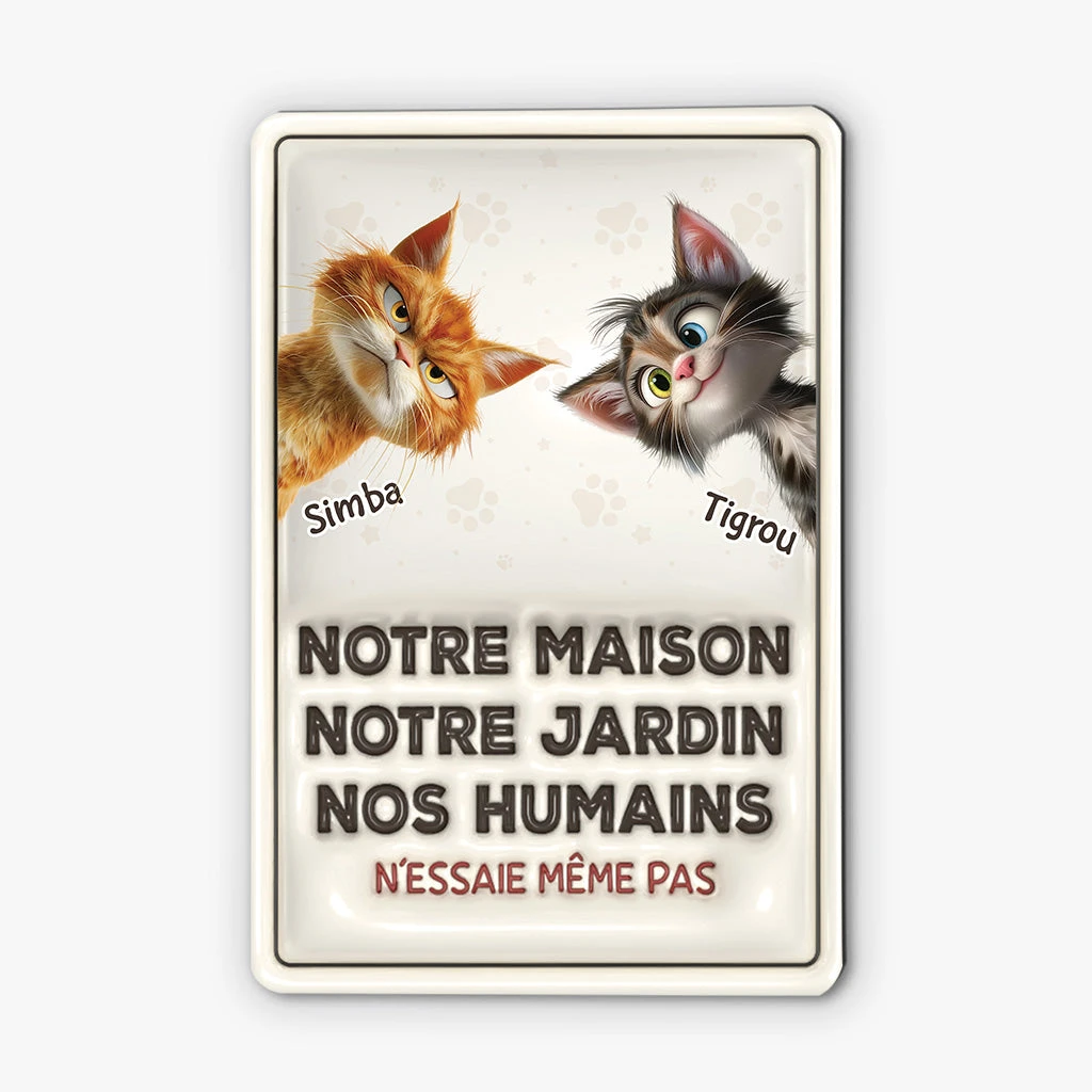 Mettez en garde les visiteurs curieux avec cette plaque metal personnalisée au message humoristique. Idéale pour les amoureux des chats au caractère bien trempé, cette plaque humoristique et décorative s’affiche fièrement à l’entrée de votre maison ou sur une clôture.