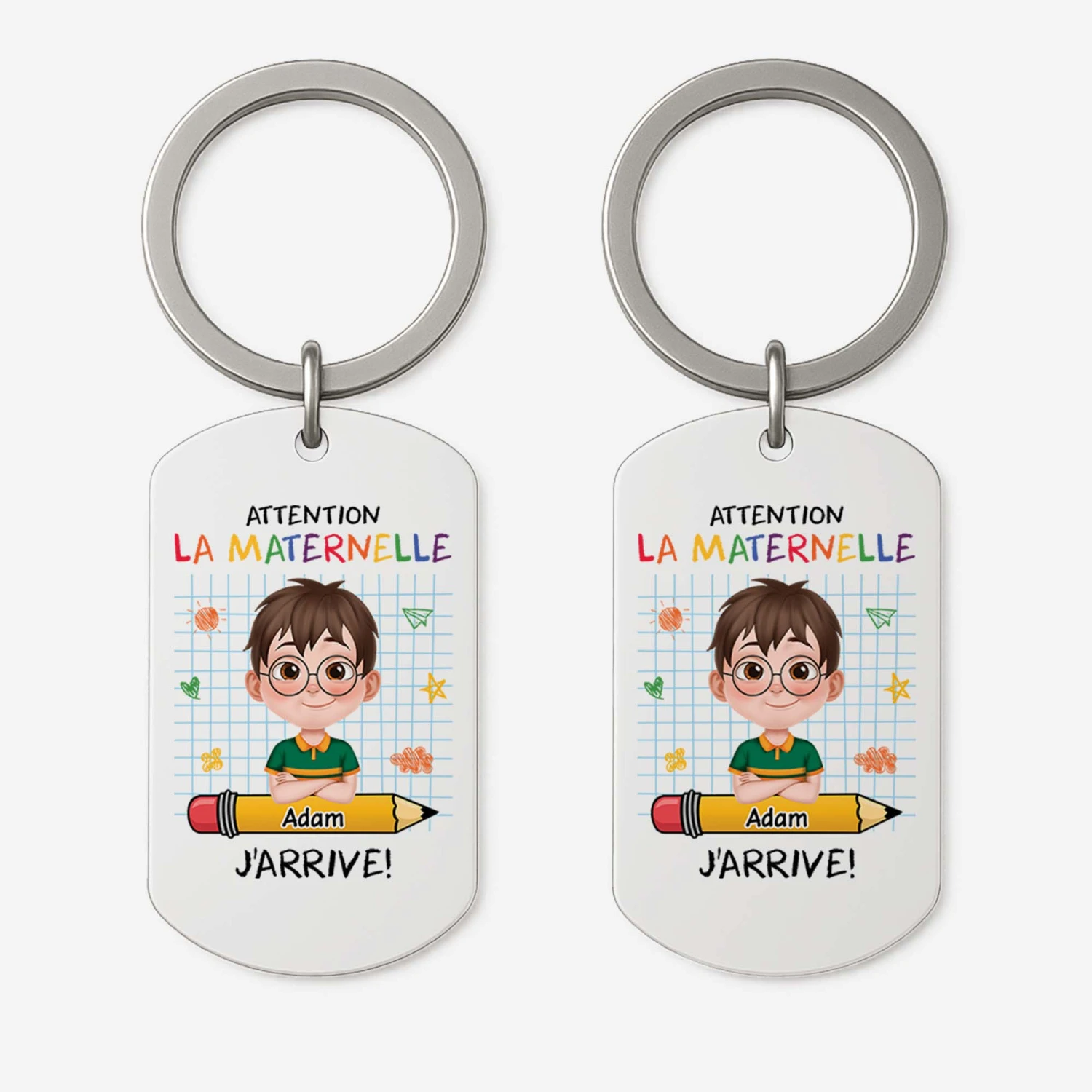 Porte-Clé Aluminium Personnalisé – Attention La Maternelle – Design Cartoon