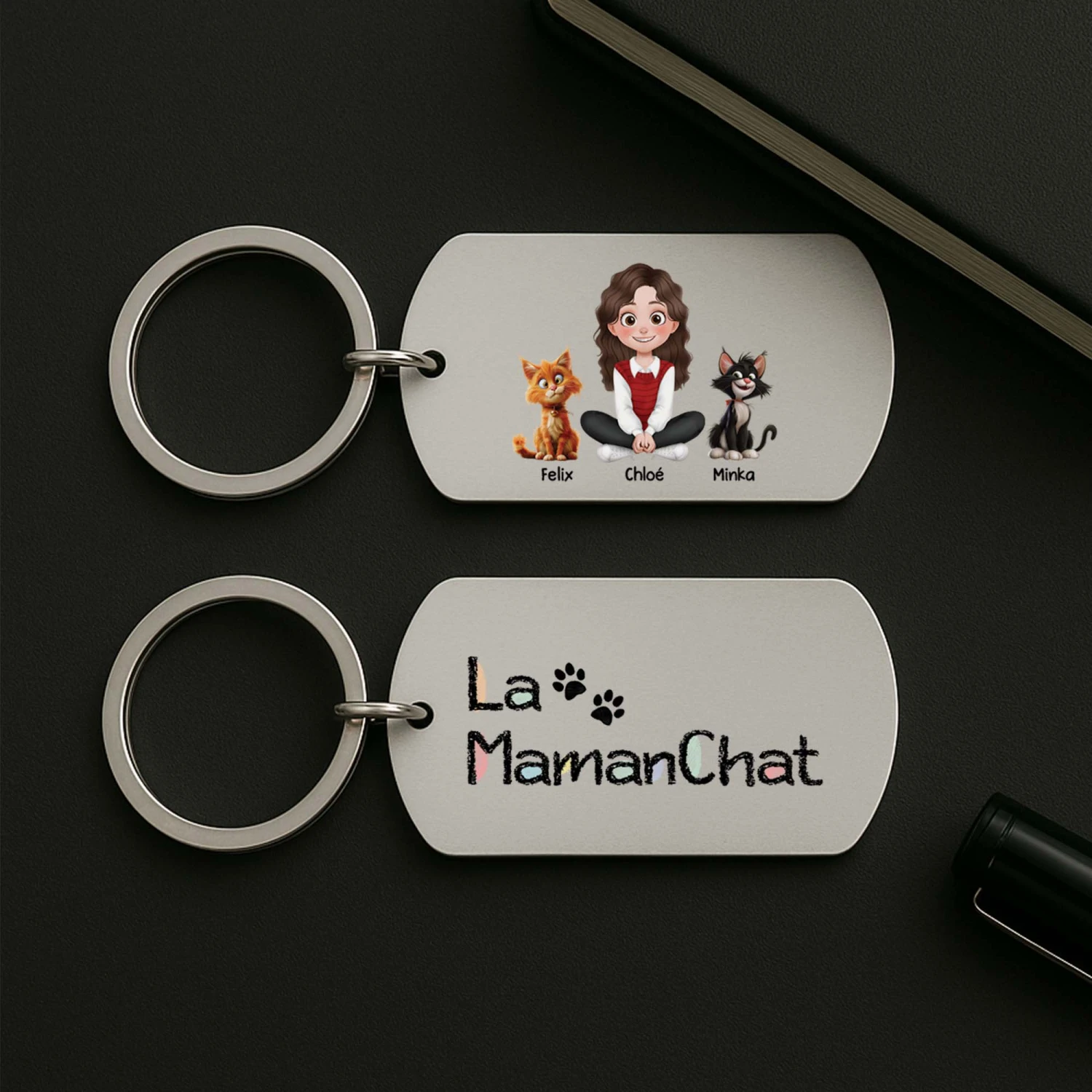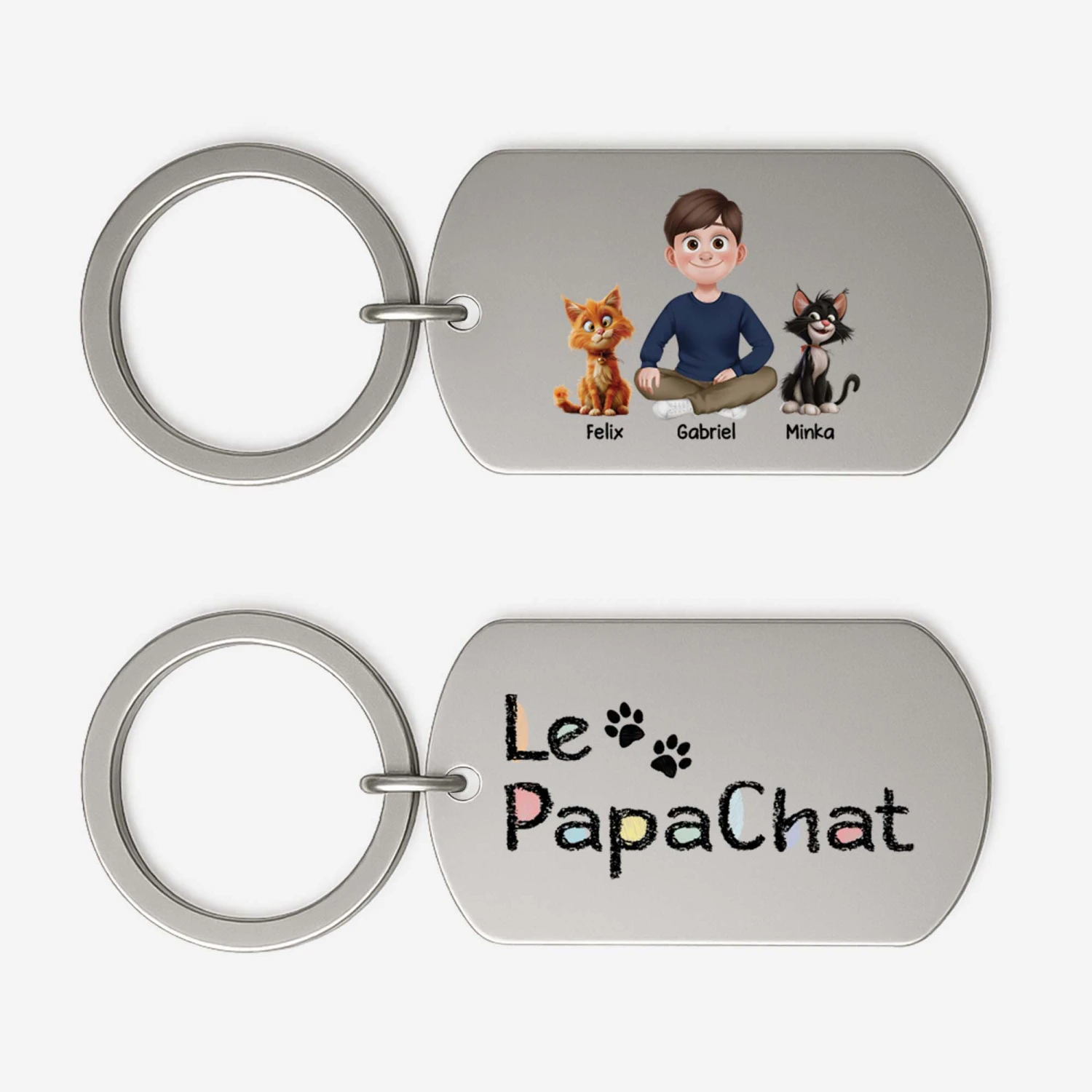 Porte-Clé Aluminium Personnalisé – Le Papa Chat – Design Cartoon