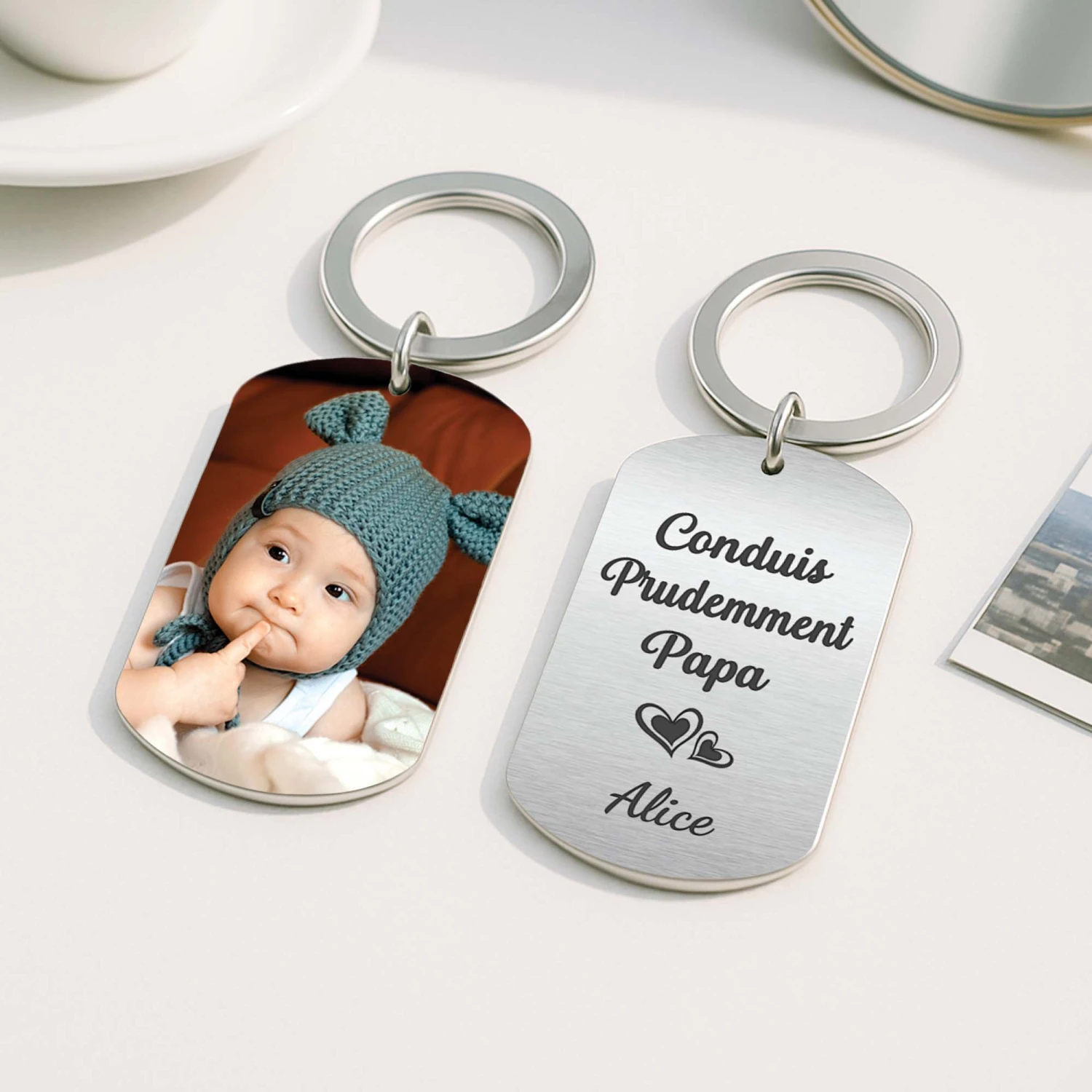 Porte Clé Aluminium Personnalisé Photo Pour Papa – Conduis Prudemment