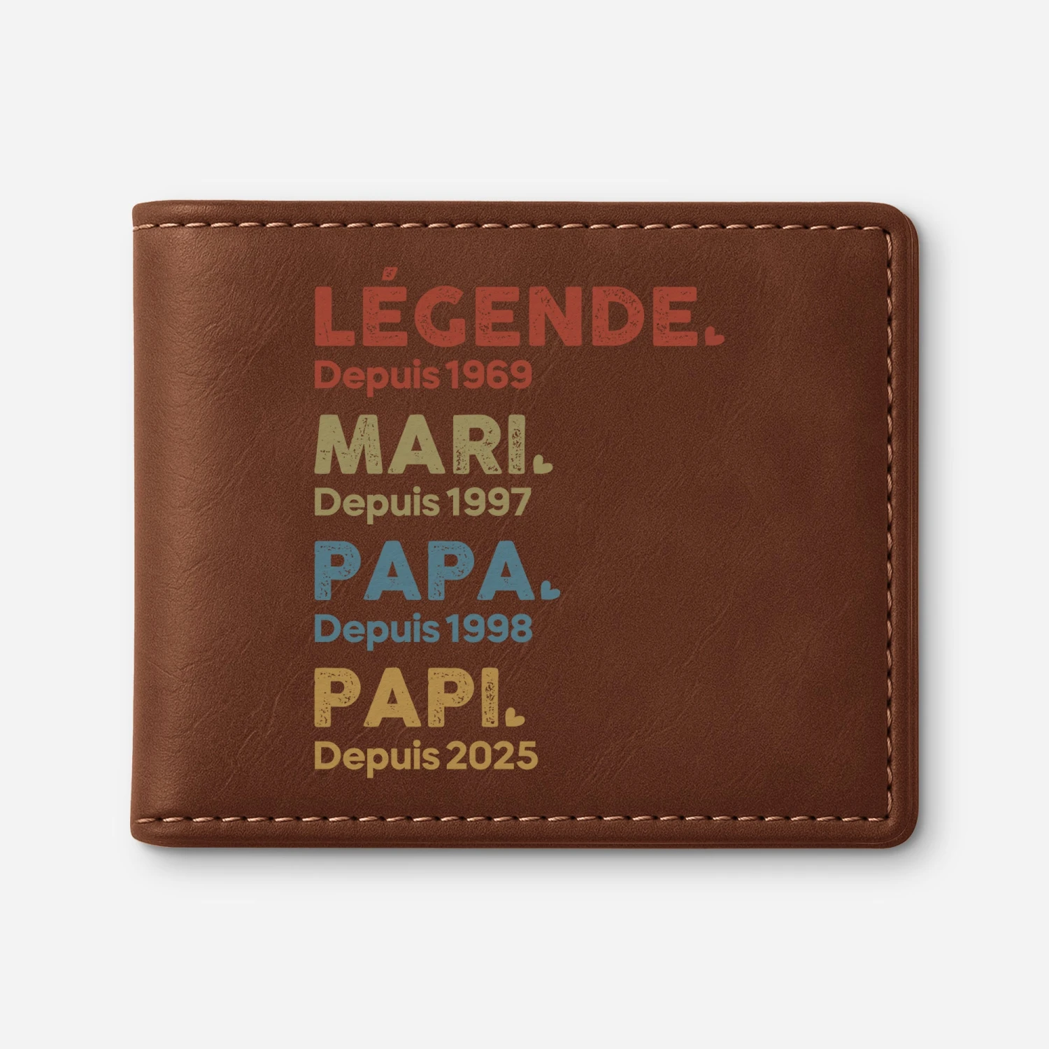 Portefeuille Cuir Personnalisé Homme – Légende Mari Papa Papy Depuis