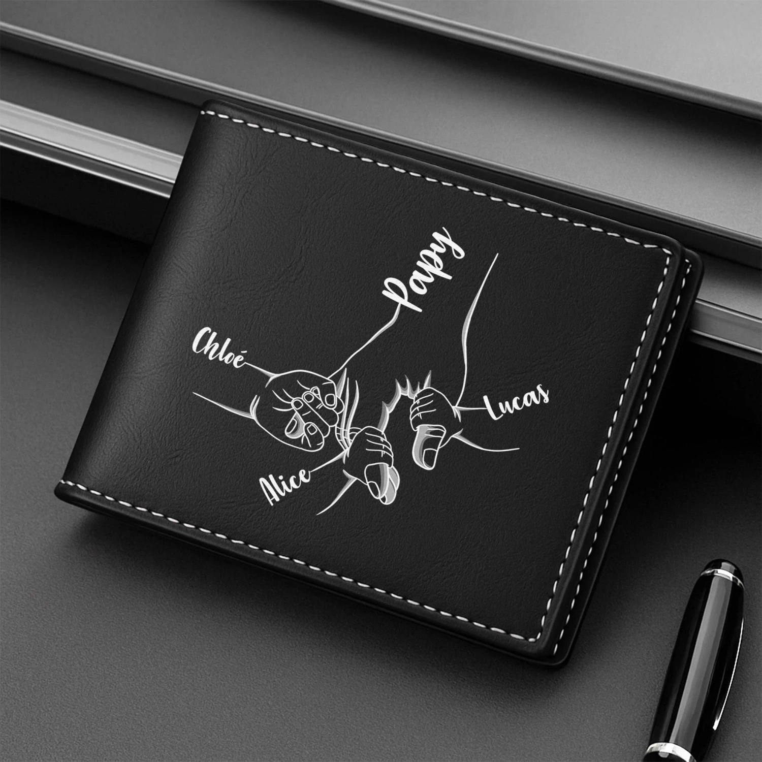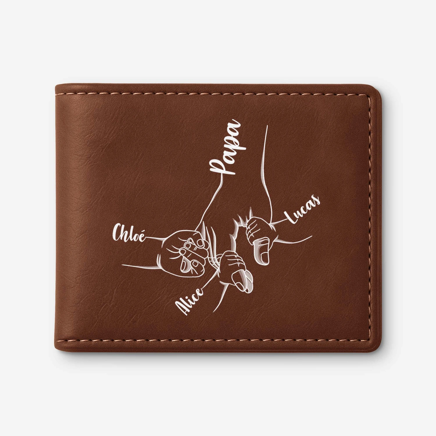 Portefeuille Cuir Personnalisé Papa Tenant Les Mains