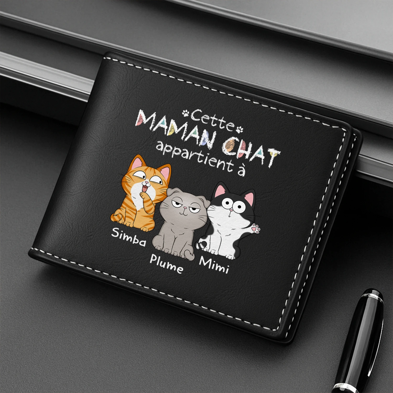 Portefeuille En Cuir Personnalisé Avec Chat Mignon – Ce Papa Appartient À