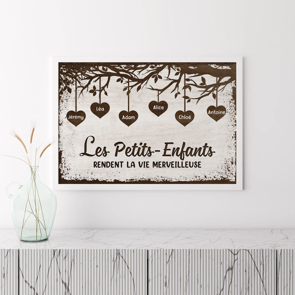 Ce poster mural arbre de vie rend hommage aux liens familiaux à travers une illustration pleine de charme, où chaque prénom prend place sur un arbre de vie personnalisé. Avec sa citation touchante, il s’impose comme un cadeau personnalisé pour mamie ou maman qui fera chaud au cœur à chaque regard.