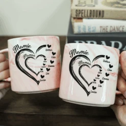 Mug Effet Marbre PersonnalisĂ© – Maman Mamie – CĹ“ur Et Fleurs