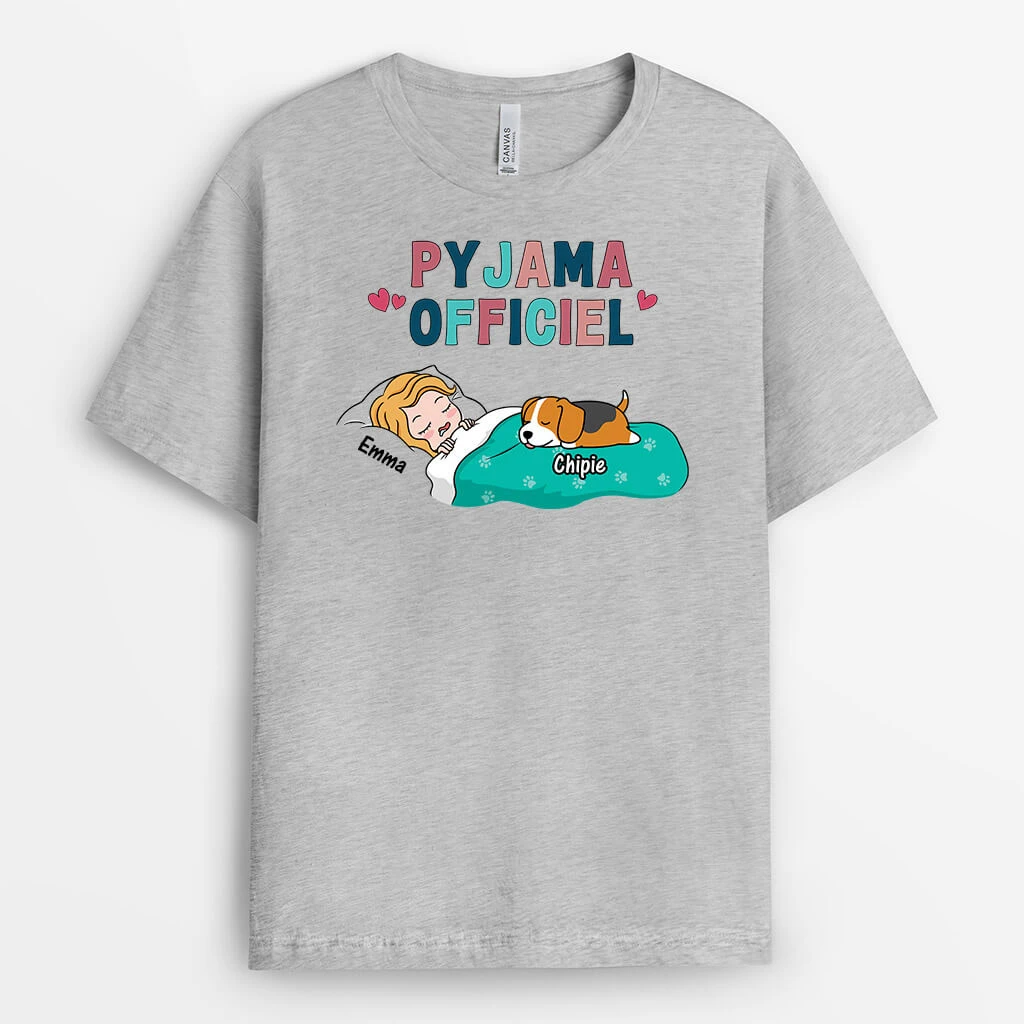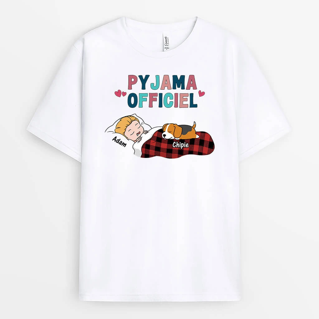 Pyjama Officiel Version Chiens Dormant Avec Textes Colorés – Tee Shirt Avec Des Chiens