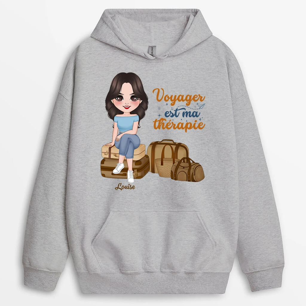 Sweat à Capuche Voyager Est Ma Thérapie Personnalisé