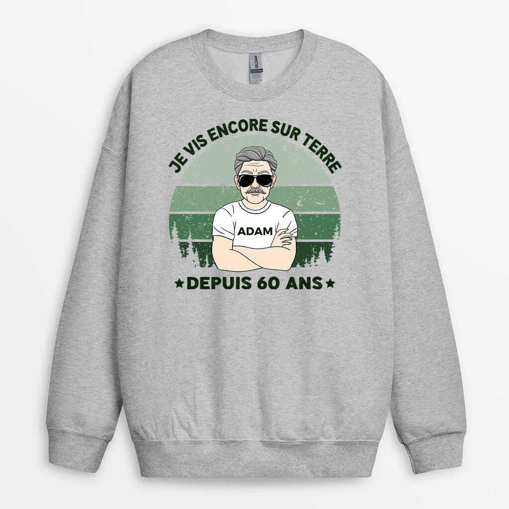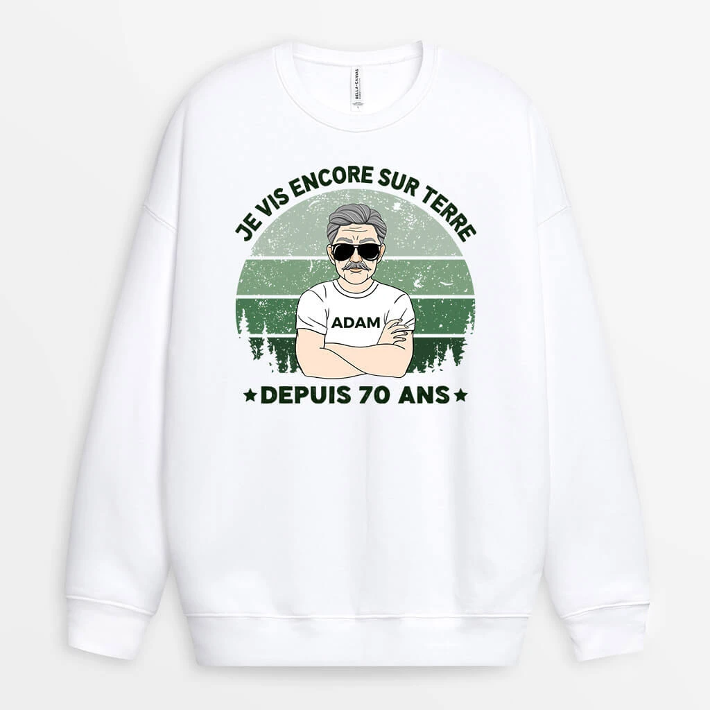 Sweatshirt Je Vis Encore Sur Terre Notre Planète Depuis 70 Ans Personnalisé