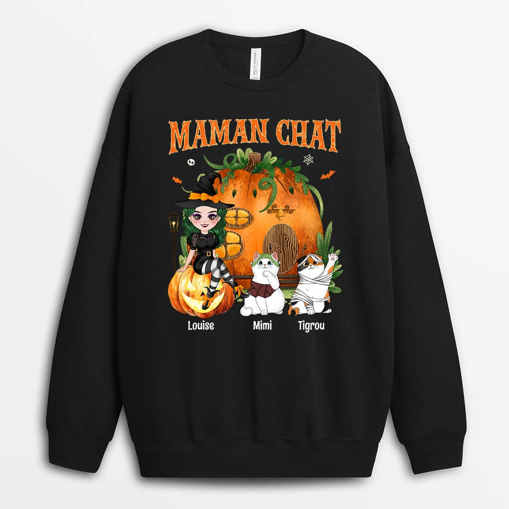 Sweatshirt Maman Chat Déguisement Pour Halloween Personnalisé