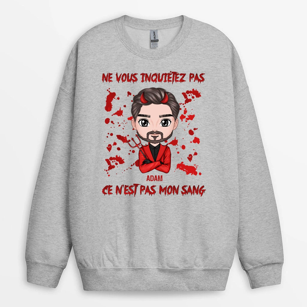Sweatshirt Ne Vous Inquiétez Pas Ce N’Est Pas Mon Sang Personnalisé