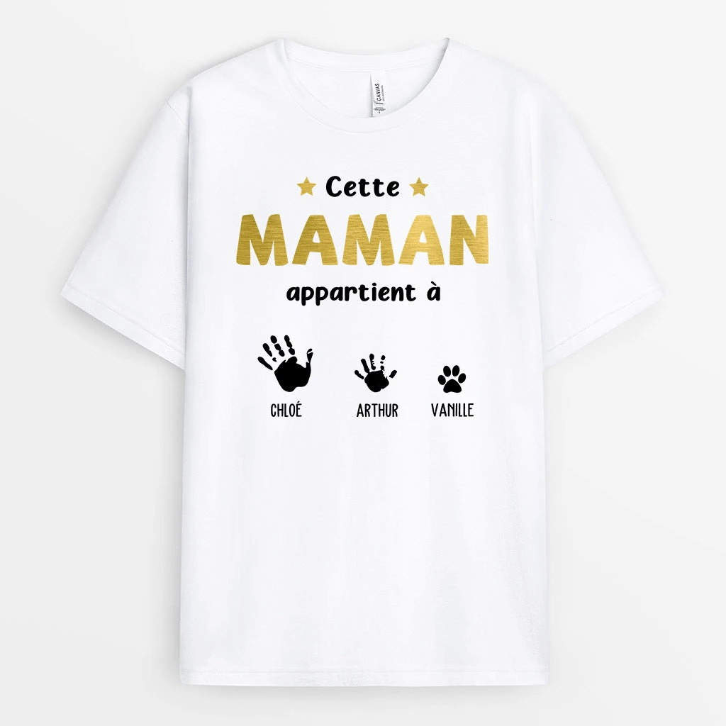 T-shirt Cette Mamie Appartient À Mains Et Empreintes En Noir Personnalisé