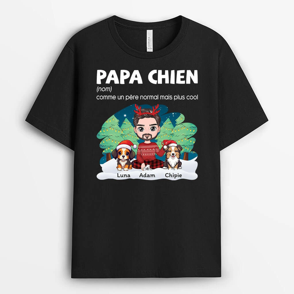 T-shirt Définition Papa De Chien Version Noël Personnalisé