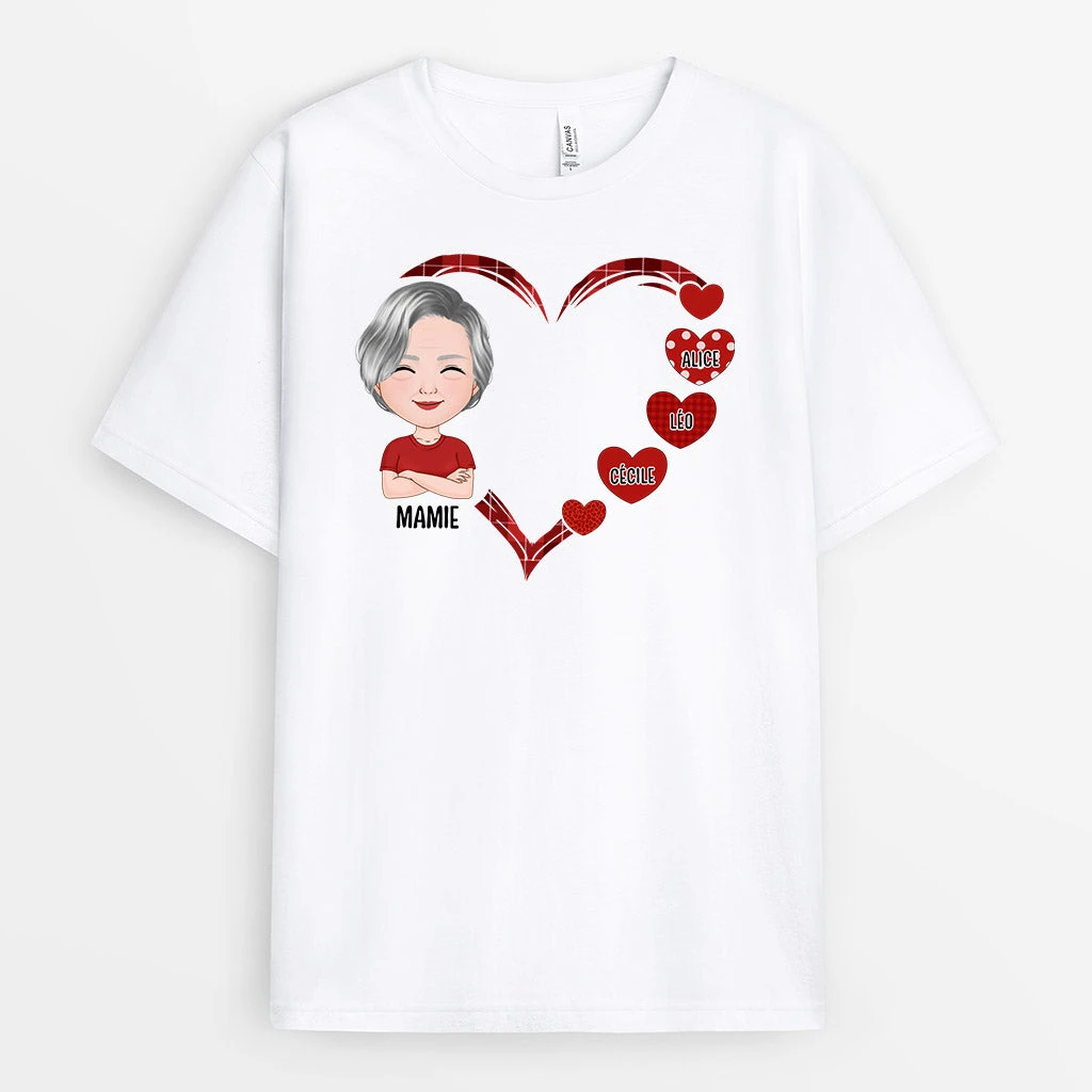 T-shirt Le Cœur De Maman Mamie Portrait Personnalisé