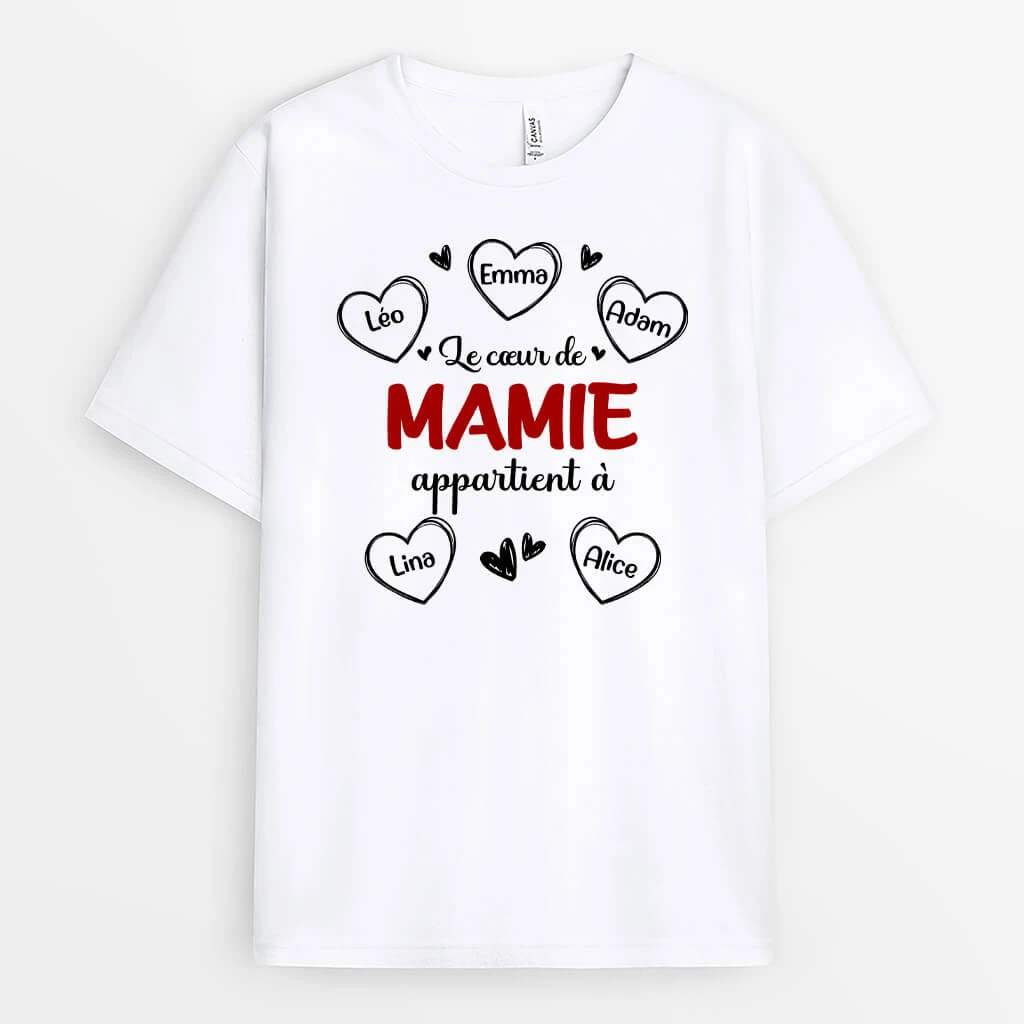 T-shirt Le Coeur De Mamie Appartient À Version Coeur Rouge Personnalisé