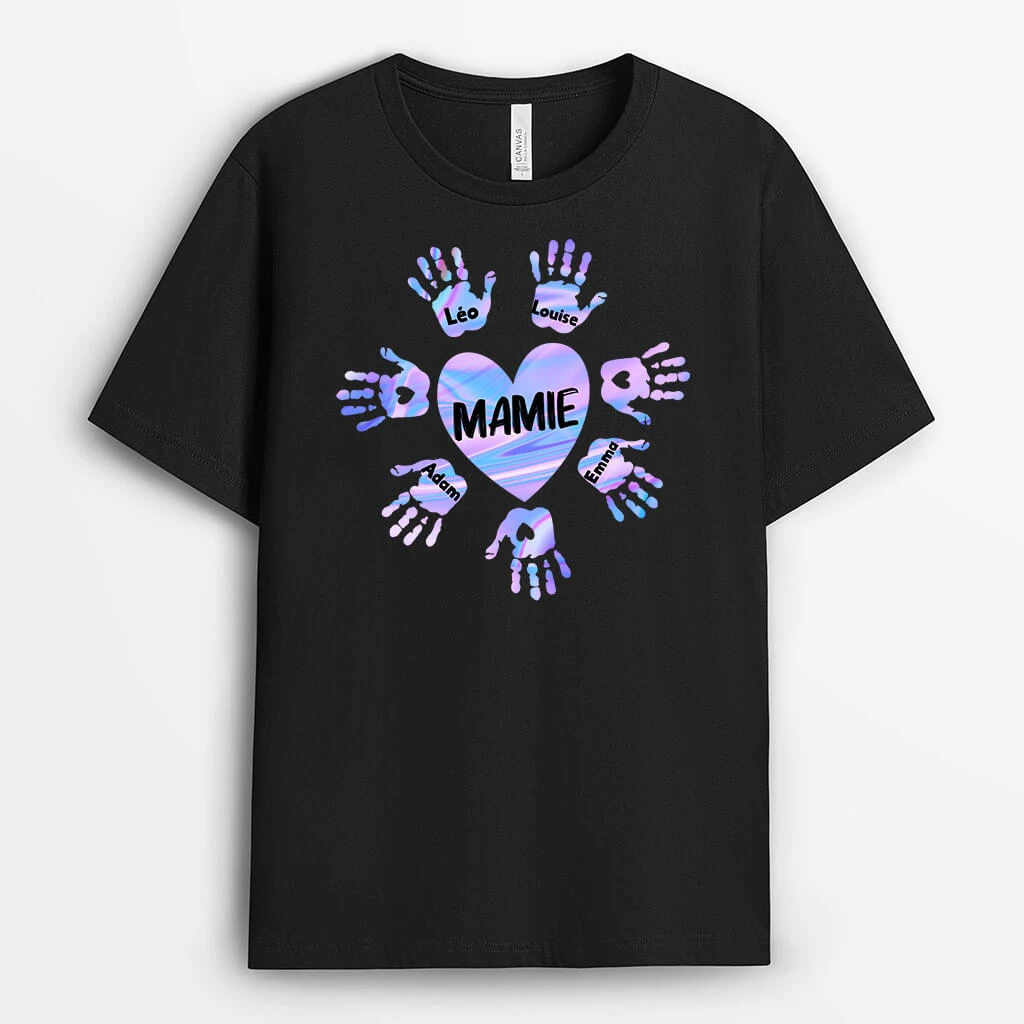 T-shirt Le Cœur De Mamie Maman Mains Entourage Personnalisé