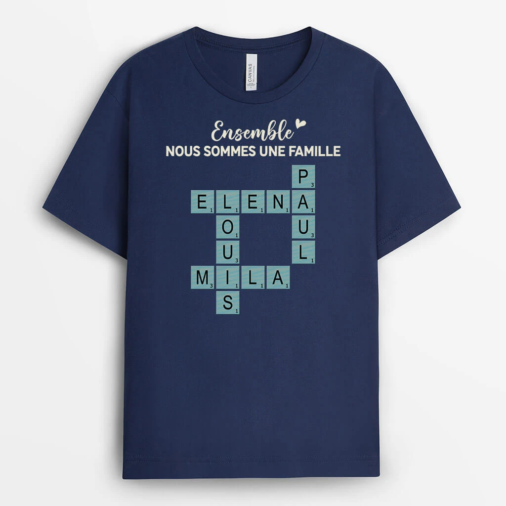 Affichez fièrement vos liens avec ce tshirt personnalisé famille. Confortable et original, il reprend vos prénoms en version mots croisés et un message plein de tendresse.