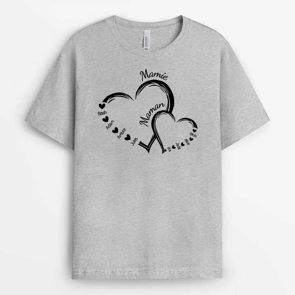 T Shirt Personnalisé Mamie – T Shirt Blanc Coeur Rouge Double