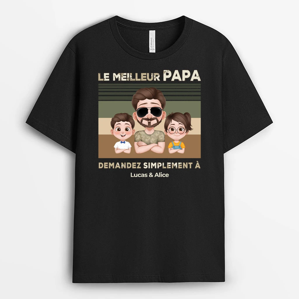 T-shirt Personnalisé – Meilleur Papa Militaire – Design Cartoon