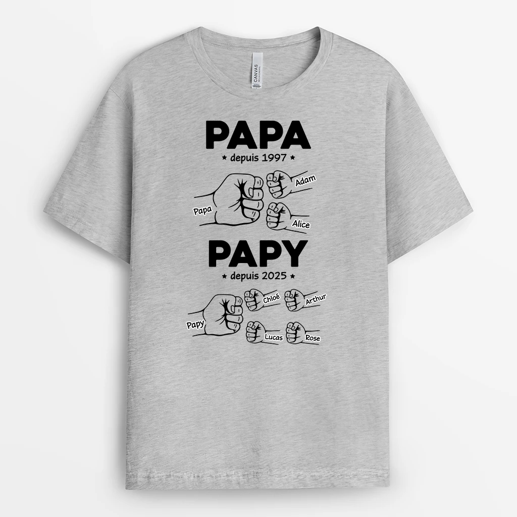 T-shirt Personnalisé – Papa Papy Depuis – Avec Poings