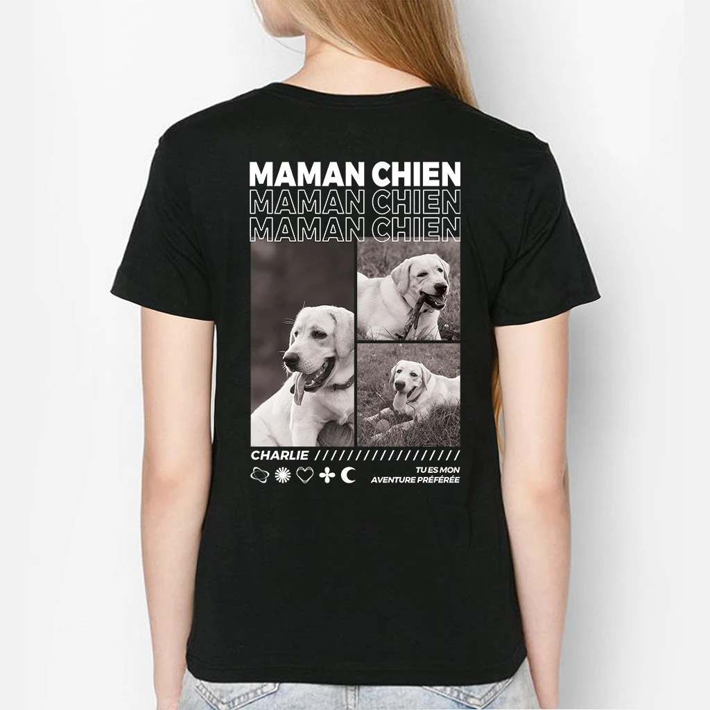 Parce qu’un chien fait partie de la famille, ce t-shirt personnalisé Maman & Chien vous permet de montrer fièrement cette relation unique. Ajoutez vos photos préférées pour créer un cadeau original à offrir à une maman chien lors de la fête des mères ou juste pour lui faire plaisir.