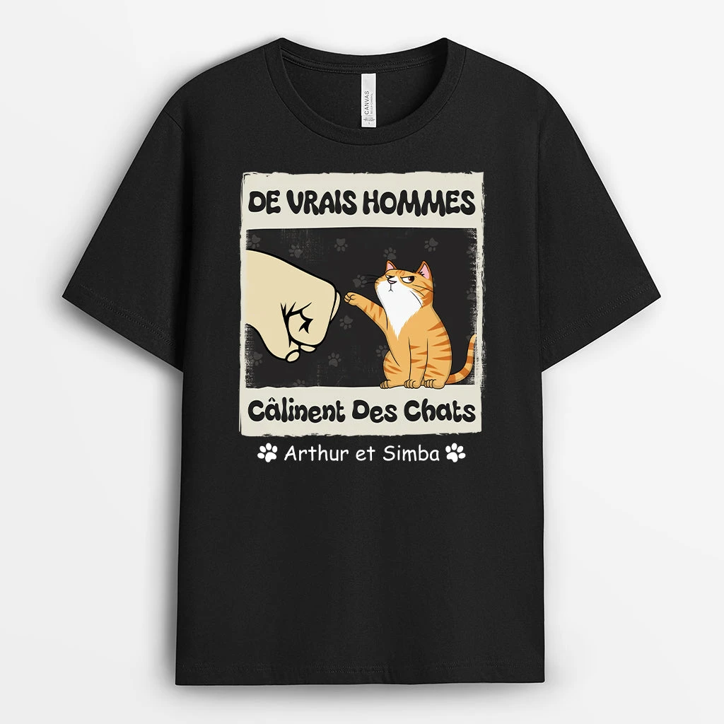 Tee Shirt Personnalisé Chat – Les Vrais Hommes Câlinent Des Chats – Poings