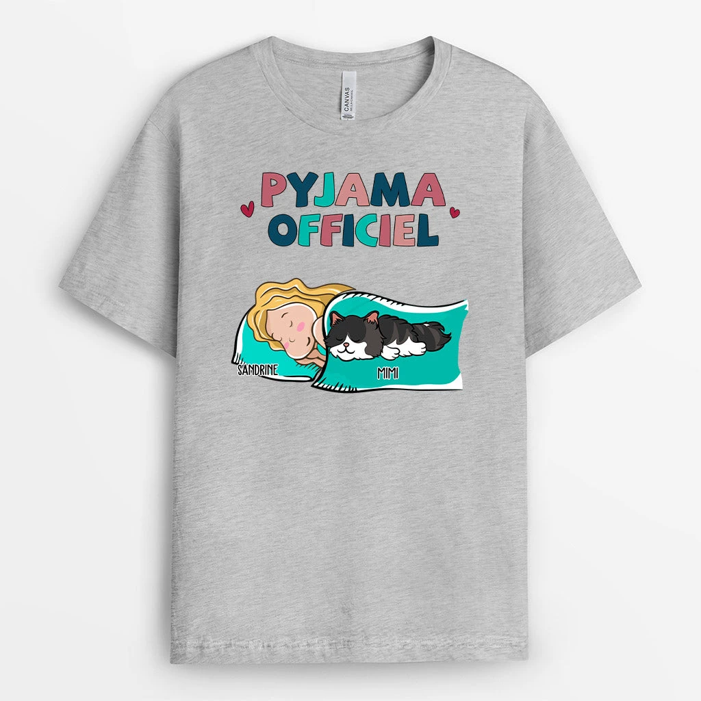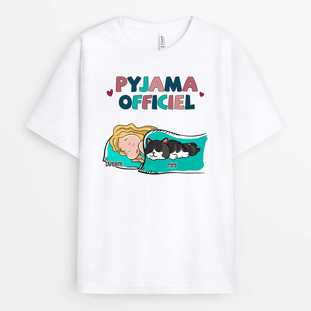 Tee Shirt Personnalisé Chat – Pyjama Officiel – Cadeau Pour Amoureux Des Chats