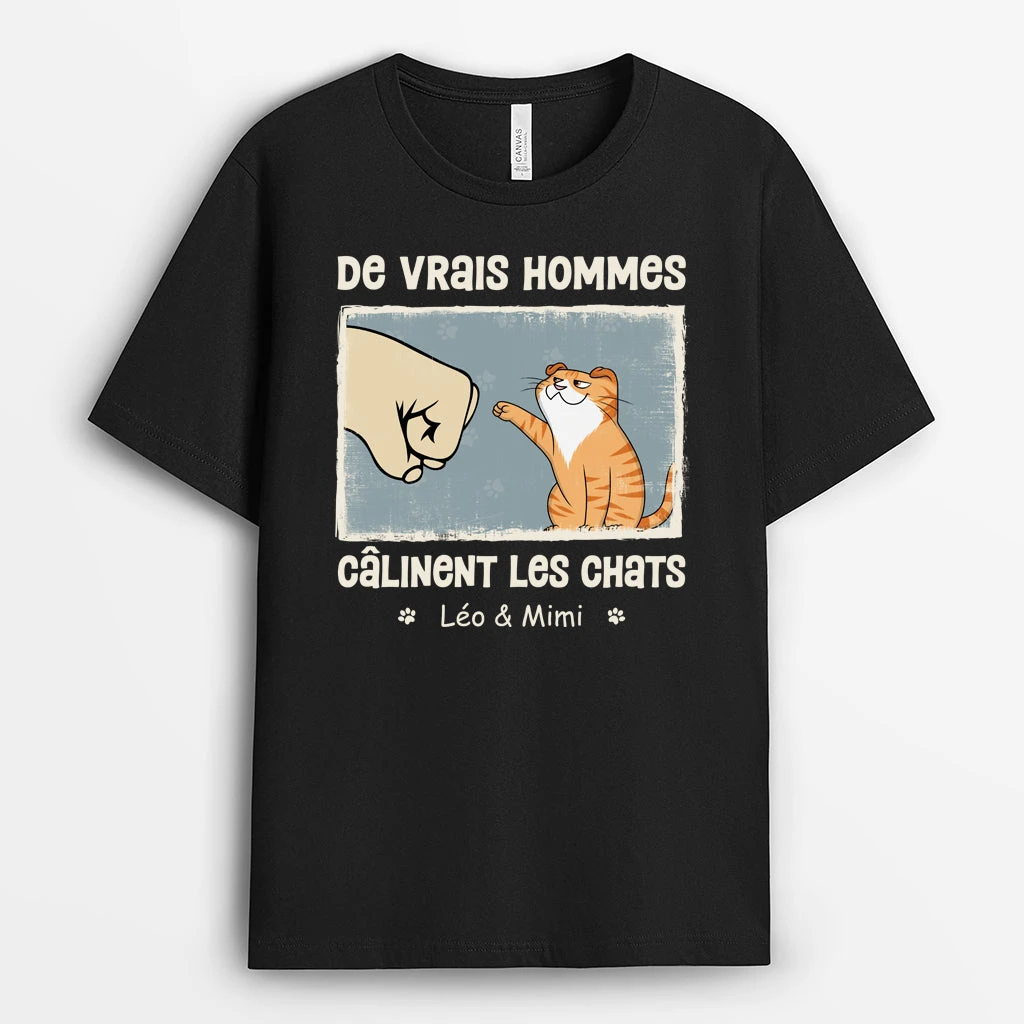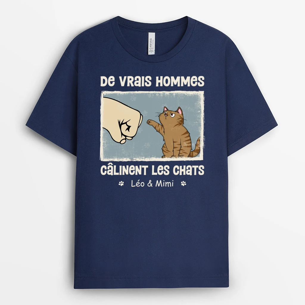 Tee Shirt Personnalisé – Les Vrais Hommes Câlinent Des Chats Espiègles