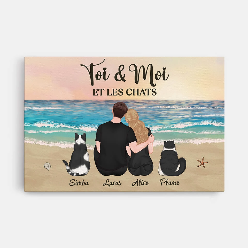 Toi, Moi Et Les Chats – Toile Personnalisée Couple