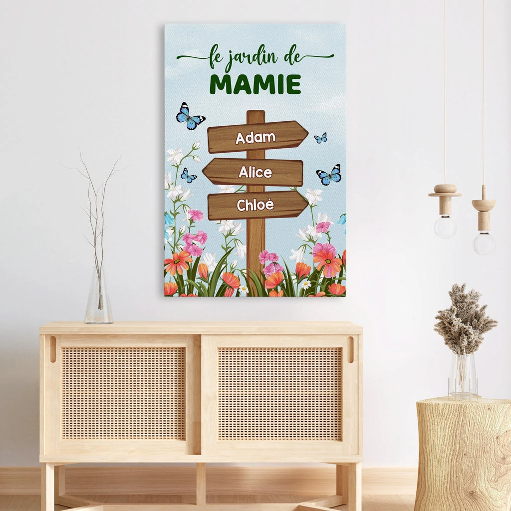 Toile Le Jardin De Mamie Maman Avec Tableau Direction Et Papillons Personnalisée