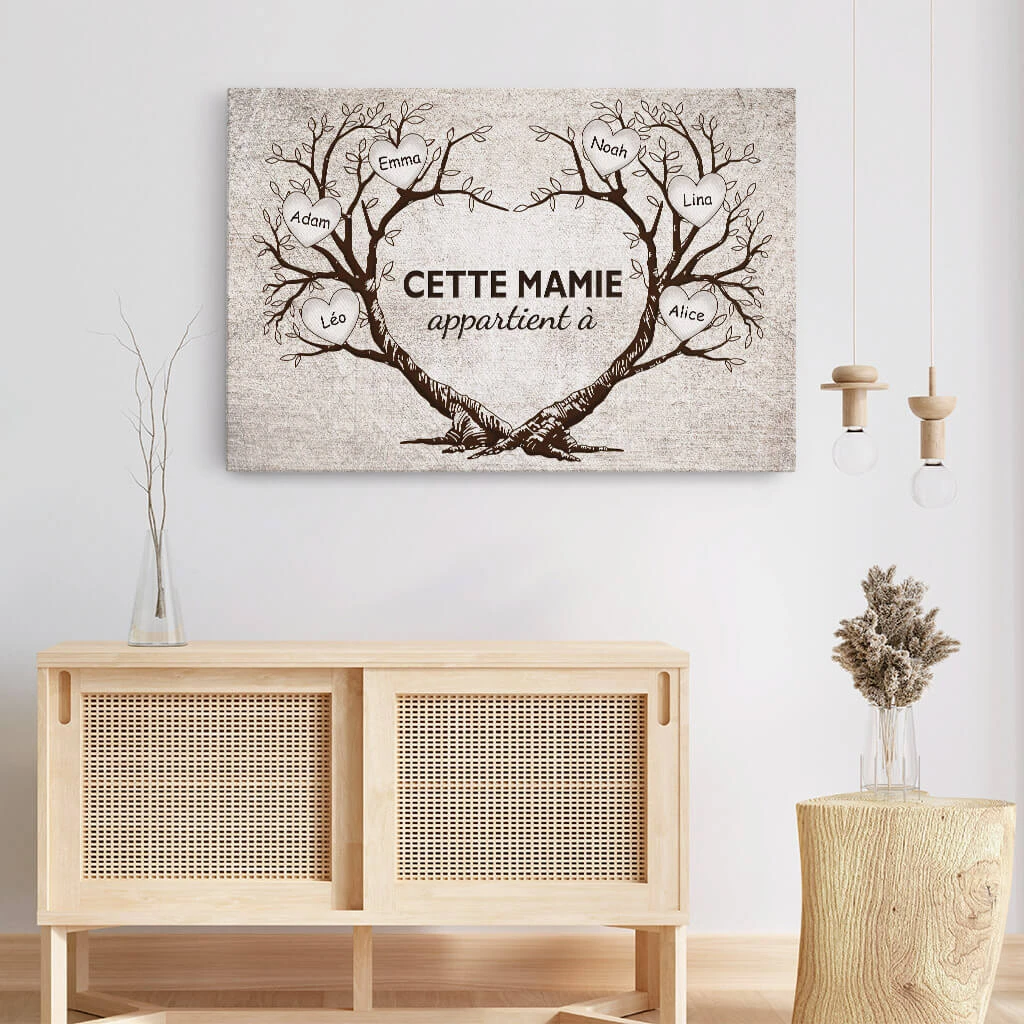 Toile Mamie Personnalisable – Arbre De Vie Cœur Dessin
