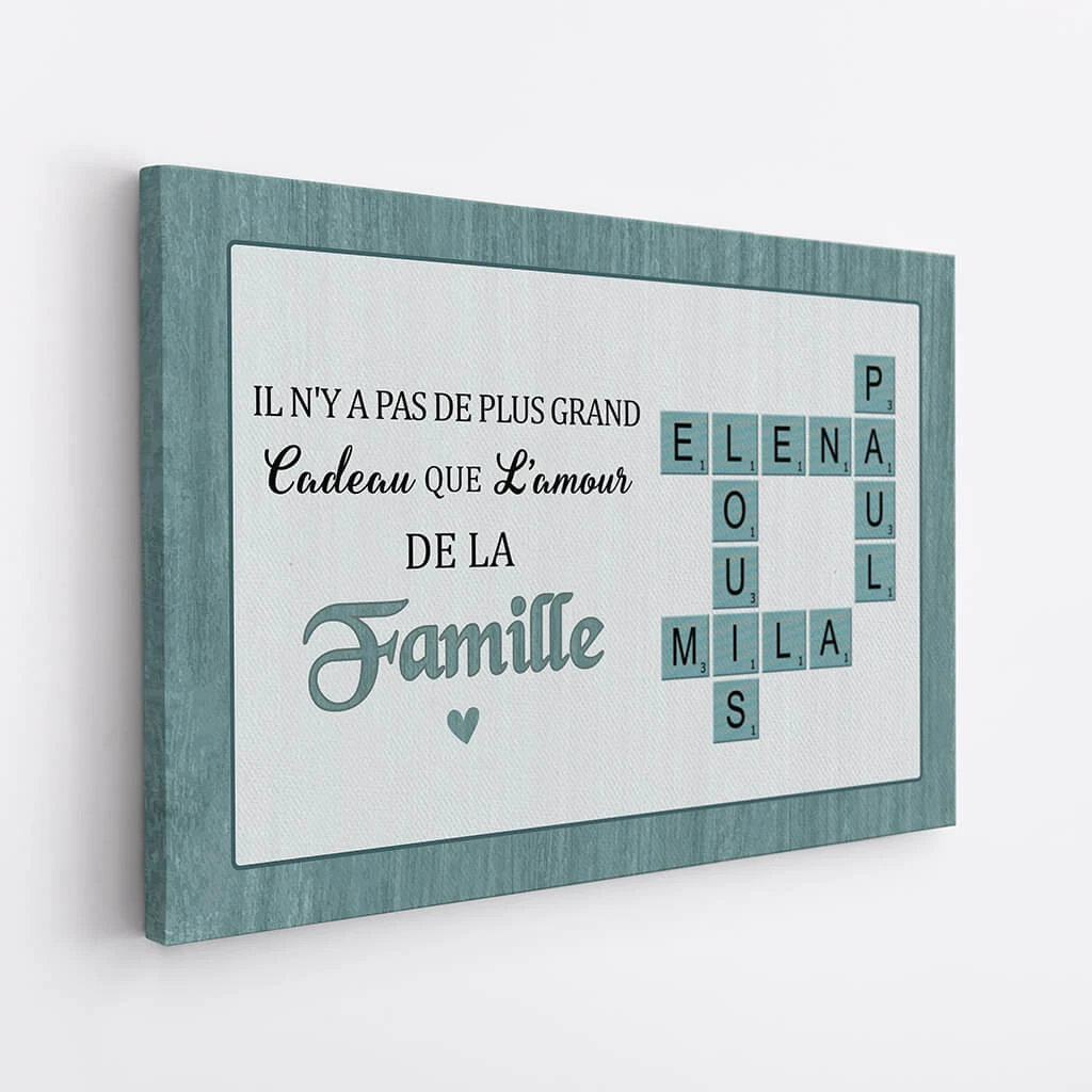 Ce tableau met à l’honneur le plus beau des trésors : l’amour partagé entre les membres d’une même famille. Grâce à son design élégant et personnalisable, cette toile famille personnalisable devient un souvenir unique, à exposer dans le salon ou à offrir à l’occasion d’un événement familial.