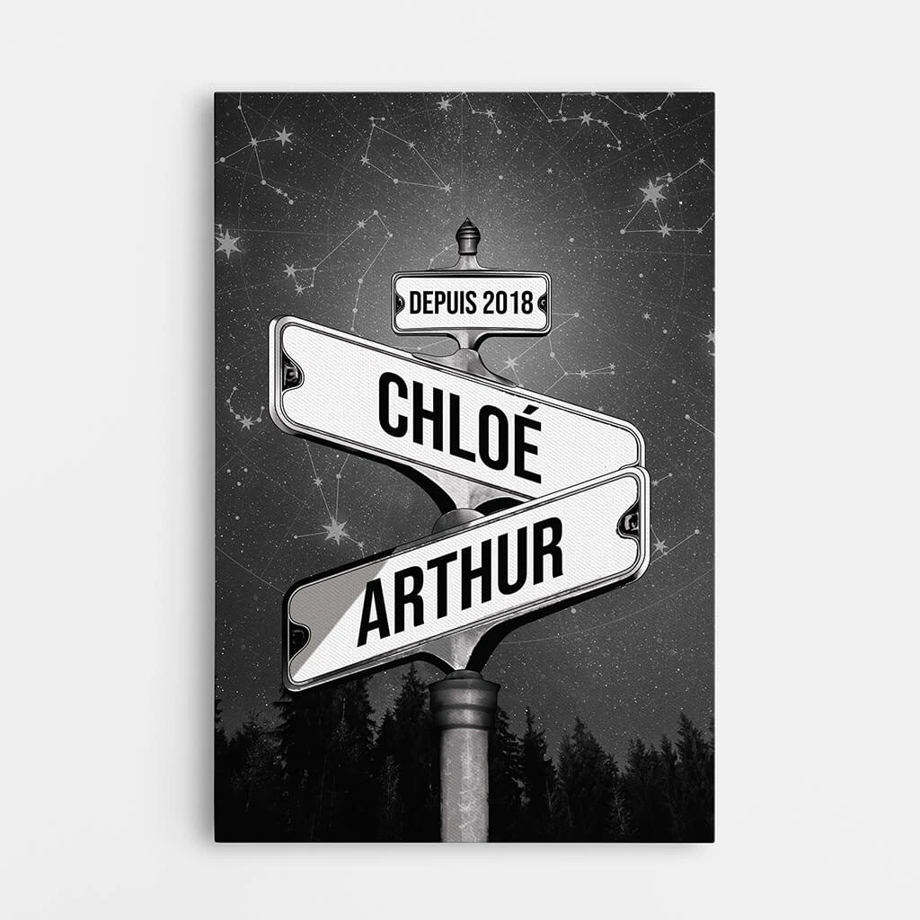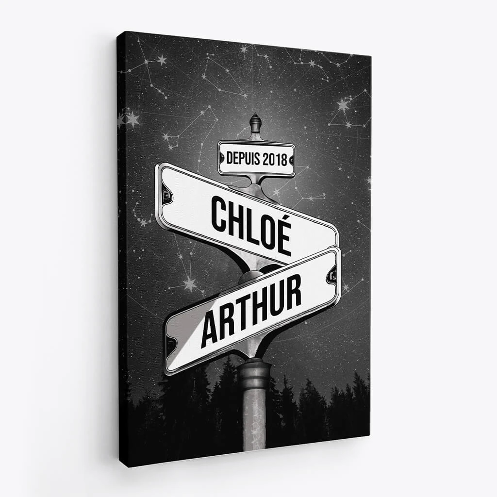 Toile Version Panneau De Rue Vintage Avec Étoiles – Tableau Couple Personnalisé