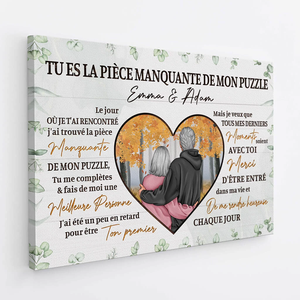Tu Es Ma Pièce Manquante Avec Textes D’Amour – Toile Personnalisée Couple